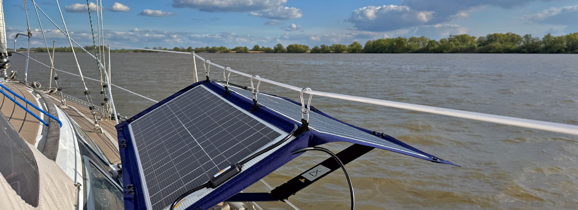 Vor diesem Hintergrund habe ich mir den Markt der mobilen Solarmodule angesehen und festgestellt, dass es eine Fülle von Anbietern gibt. Allerdings stellt sich bei einigen Produkten die Frage, ob die Qualitätsmerkmale den mitunter rauen Anforderungen auf See standhalten. Das gilt insbesondere für längere Segelreisen, wo die Bedingungen anspruchsvoll sein können, wenn beispielsweise die Luft salzig ist oder die Sonne brennt. Dann wird das Material stark beansprucht.