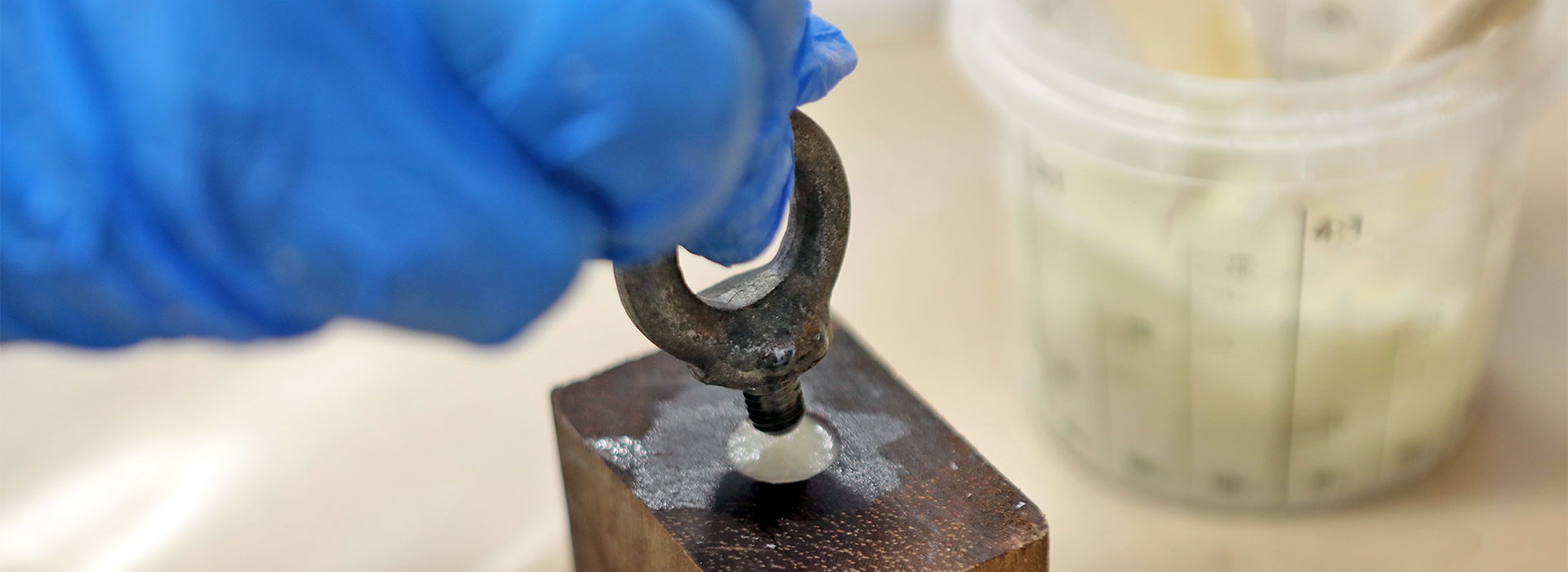 Vor dem Aushärten wird herausgequollenes Epoxy mit Spachtel und Pinsel entfernt. ©️Sönke Roever