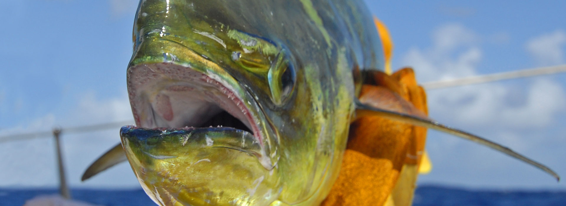 Auf hoher See werden in der Regel von Blauwasseryachten aus nicht allzu viele verschiedene Fische geangelt. Am häufigsten beißt der Mahi Mahi, der auch Dorado oder Goldmakrele genannt wird. Er ist leicht an seinem charakteristischen Kopf und den gelb schimmernden Schuppen zu erkennen. Ein toller Fisch, der absolut zart und saftig ist. In unseren Augen schmeckt er mariniert und auf dem Heckkorbgrill gegart am besten.
