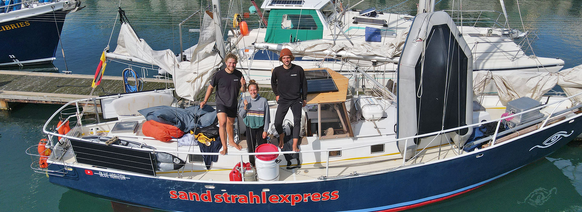 Mit wenig Segelerfahrung, kleinem Budget und altem Schiff machen sich die drei Schulfreunde Jonas, Leonie und Thilo gemeinsam in jungem Lebensalter (alle 22) auf zur Weltreise unter Segeln. Trotz leergefahrenem Dieseltank im strömungsreichen Chenal du Four, Orca-Angriffen auf der berüchtigten Biskaya und einer Grundberührung an der Algarve bei Sagres hat die Crew die erste große Etappe zu den Kanarischen Inseln unbeschadet überstanden. Und auch wenn es einige Schwierigkeiten zu meistern galt, brechen die Segler im Januar 2021 zur Atlantiküberquerung auf.