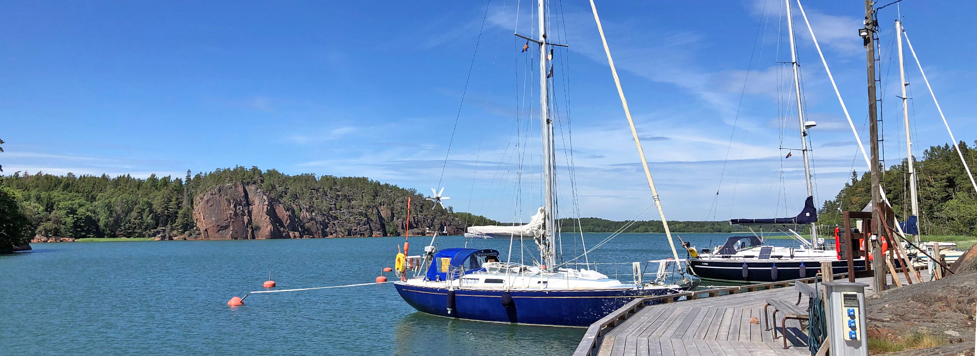 Der Gästesteg von Bomarsund liegt im Norden der Åland Inseln, gut geschützt am südlichen Ende einer kleinen Bucht. Nur bei nördlichen Winden kann es hier ruppig werden. Der Gästesteg wird vom Campingplatz nebenan betrieben.