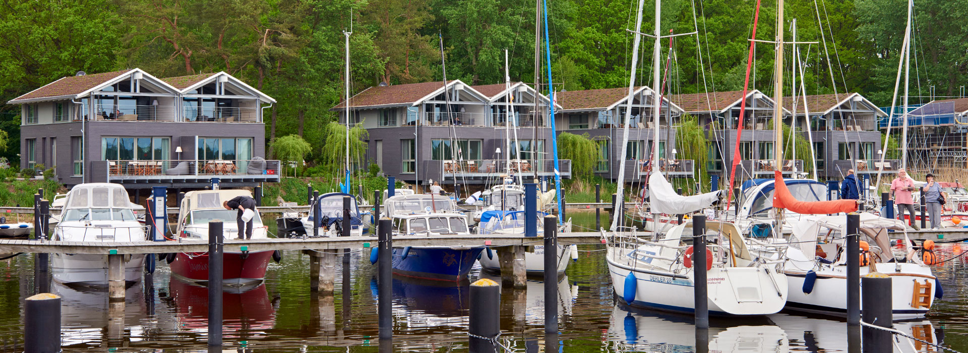 Gut, zum Gelände gehören auch sieben „Uferhäuser mit Lagunenblick“, wie die Ferienhäuser genannt werden. Und ein Hafenbistro mit Brötchenservice, Bootshalle, Kran, Frei- und Mastenlager.
