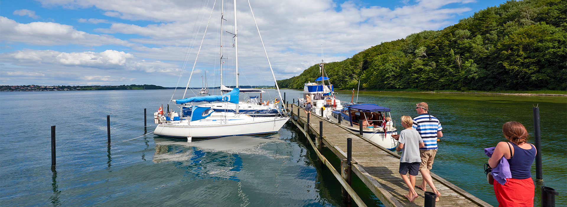 Hin und wieder, wenn einer der kleinen Frachter Richtung Kolding zieht, wippen die Boote im Schwell, „nur an den Wochenenden wird es hier mal voller“, erzählt eine dänische Segelcrew aus Fredericia. Etwa 600 Meter weiter östlich gibt es einen Parkplatz, einen schönen Badestrand, Müllbehälter und ein Restaurant.