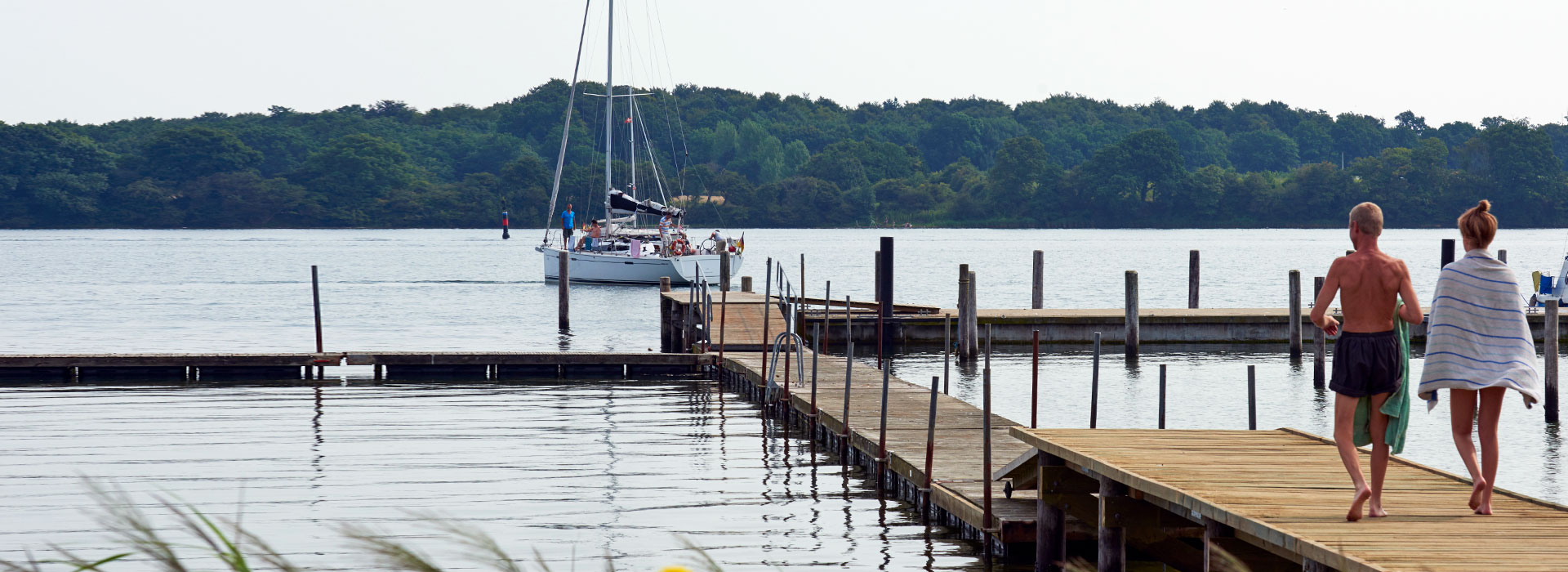 An den Ufern des engen Als Sund zwischen dem dänischen Festland und der Insel Als ziehen Weiden, Felder, Kühe, Bauernhöfe, Wälder und Steilküsten am Segler vorüber. Am nördlichen Ausgang liegt die winzige Siedlung Sottrupskov, ein paar reetgedeckte Häuser ducken sich hier neben einen Buchenwald in den Hang. Davor ragt ein Holzsteg weit in den tiefen Sund hinein, die engen Boxen haben bis zum Steg weit über zwei Meter Wassertiefe.