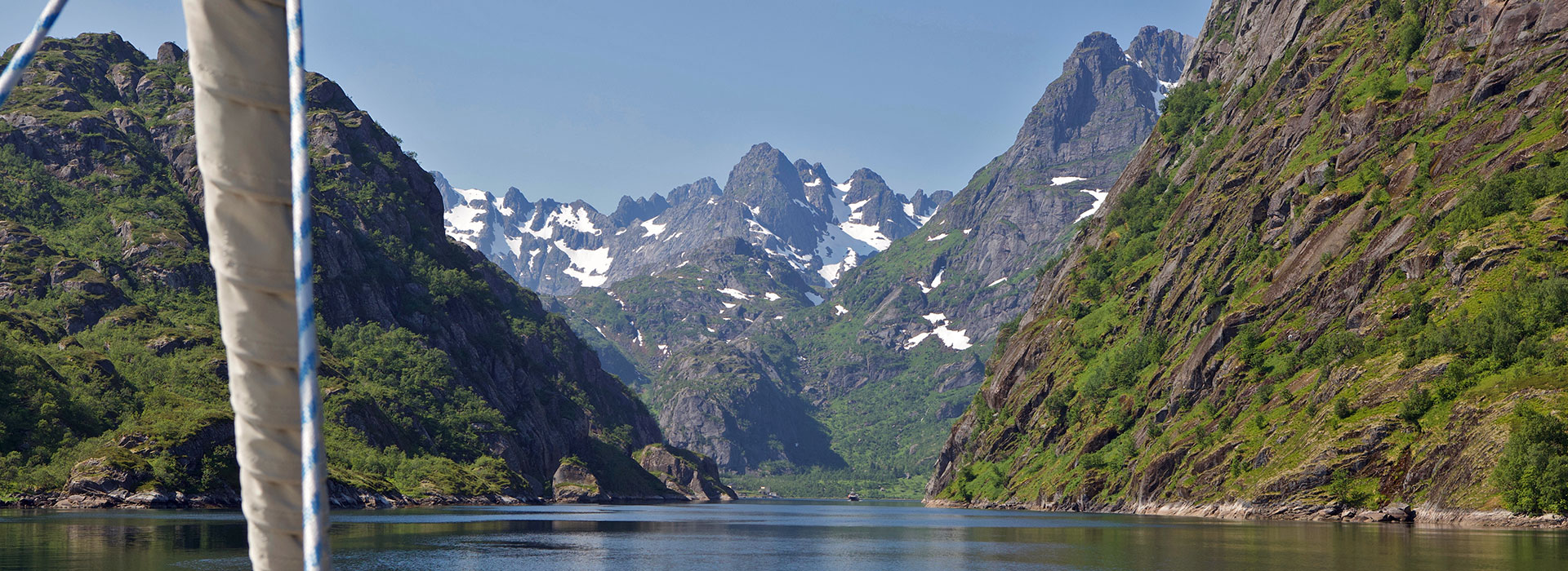Bei Einfahrt in den Fjord lässt sich der Kopf kaum weit genug in den Nacken legen, um das obere Ende der senkrechten Felsen zu erkennen. Wasserfälle stürzen die Wand hinunter und Seeadler ziehen ihre Kreise. Das bis 70 Meter tiefe Wasser des Fjordes liegt dunkelgrün bis schwarz unter einem.