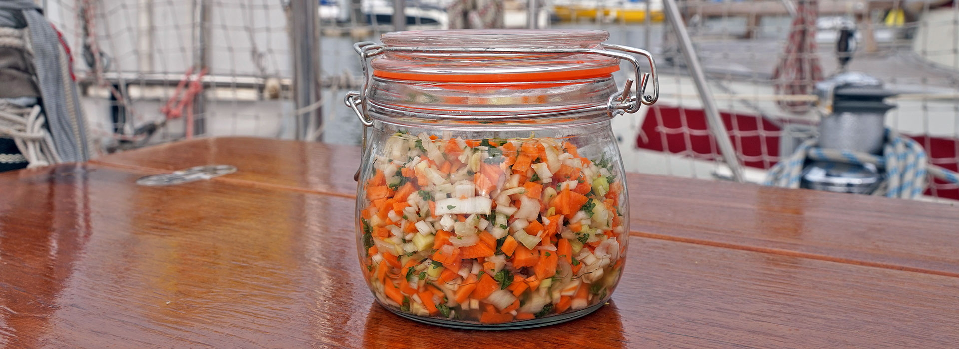 Das Gemüse mit dem Salz mischen und in das Glas füllen. Gut verschließen und kühl lagern.