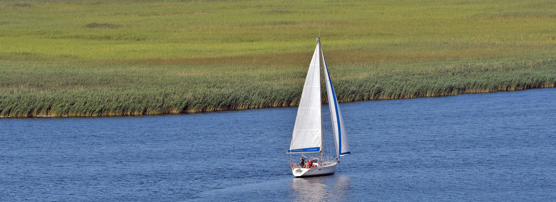 Auch im Haff gibt es trotz Fahrwasser genug Platz zum Segeln