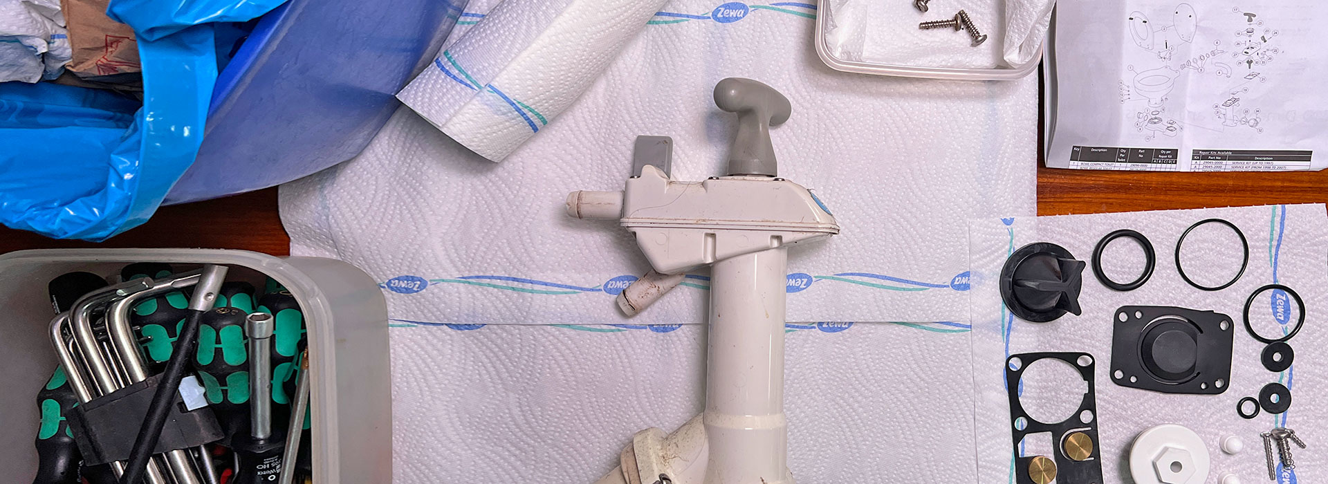 Die Wartung und Reinigung der Pumpe des Bord-WCs ist sicher nicht die schönste Aufgabe an Bord. Jedoch lässt sich so mit geringem Aufwand viel Geld sparen. Ursache des Problems sind meist Verunreinigungen oder eine veraltete Dichtung. Glücklicherweise steht hier der Hersteller dem Anwender mit Ersatzteilen und Servicekits zur Seite, statt gleich auf eine neue Bordtoilette zu verweisen.