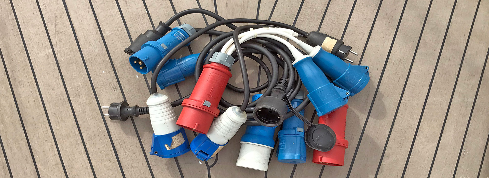 Beim Segeln vor der Haustür werden normalerweise selten Adapter oder verschiedene Kabel benötigt. Wer jedoch auf eine Blauwasserreise geht, benötigt immer mal wieder eine andere Kombination aus Kabel und Adapter, um die Landstrom-Verbindung herzustellen. Über die Jahre haben sich bei uns an Bord nicht wenige Adapter und Kabel angesammelt, die immer mal wieder zum Einsatz kommen. Welche das sind, zeige ich daher im Folgenden einmal auf – vielleicht hilft es ja bei der Reiseplanung.